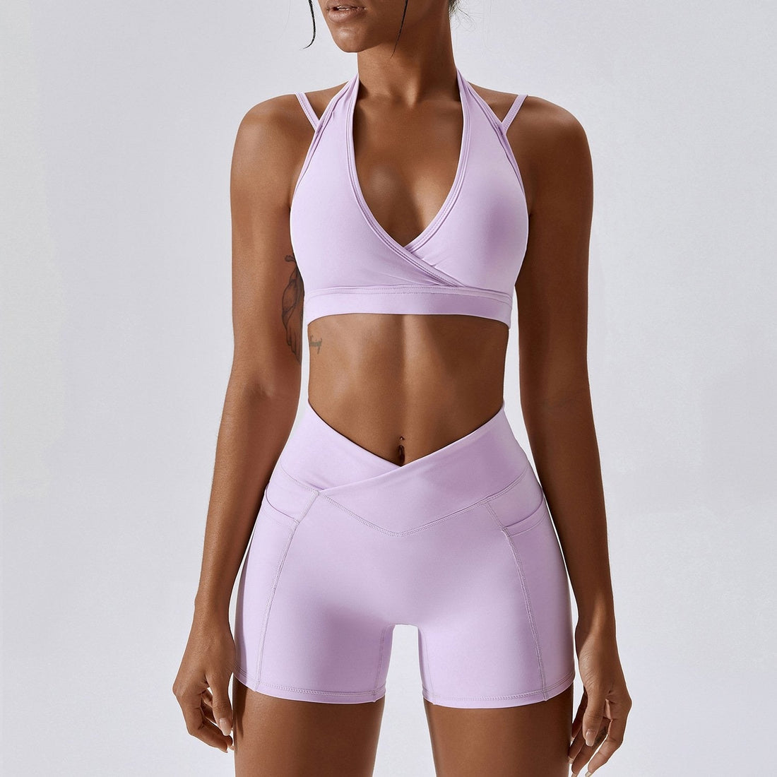 BREEHER V Waist Halter Vest Butt Lift Two Piece Set Sports Suits