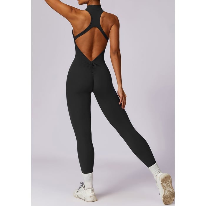 BREEHER Zipper Neck Backless Seamless Highly Elastic Jumpsuits