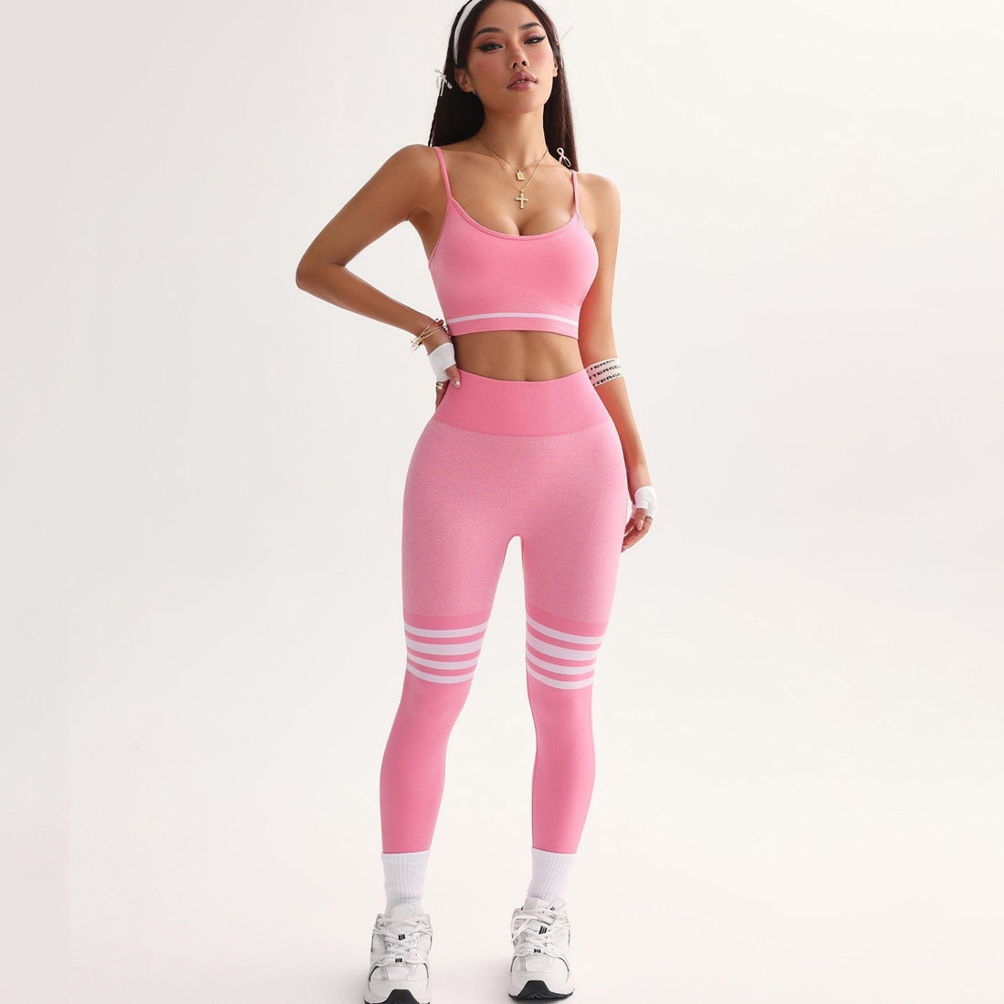 Striped Suspender Bra Hip-lifting High-waist Leggings Yoga Set