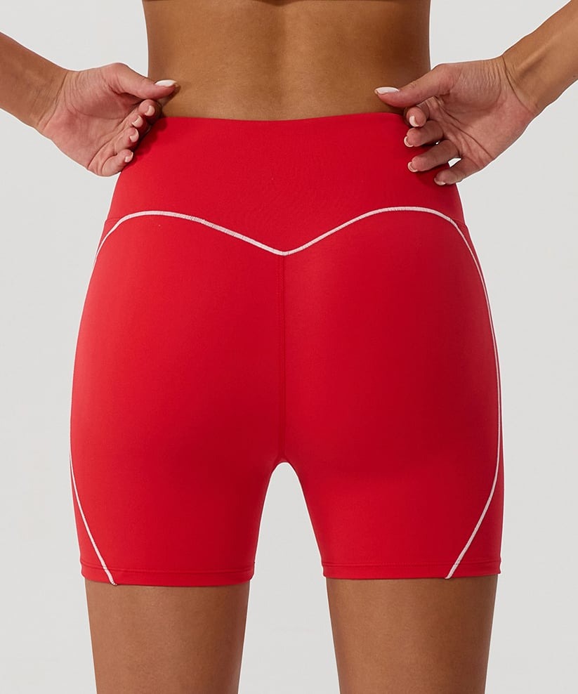 Heart Contrast Color High Waist Hip Lift Yoga Shorts
