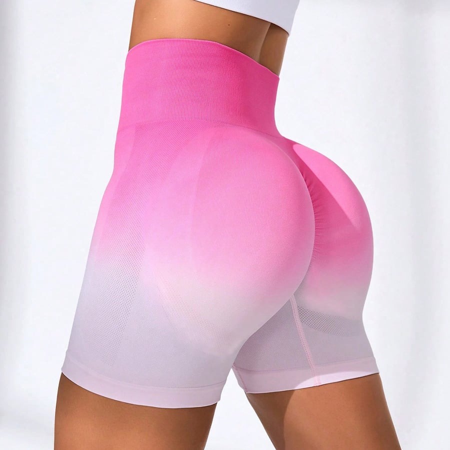 BREEHER Ruched Gradient Print High Waisted Hip Lifting Shorts
