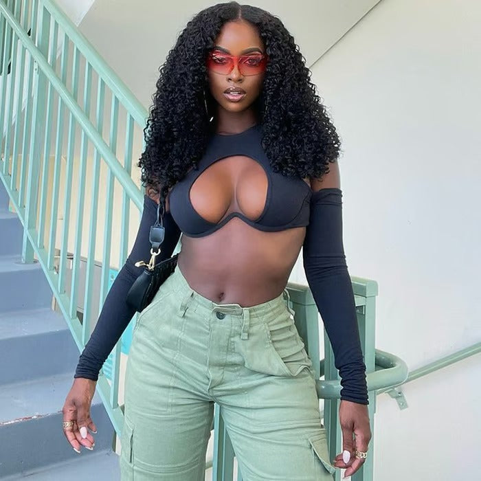 BREEHER Women's Fitness Hollow Out Sexy Yoga Long Sleeves Tops