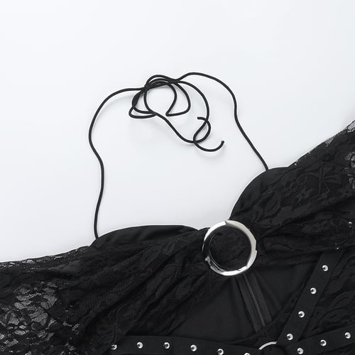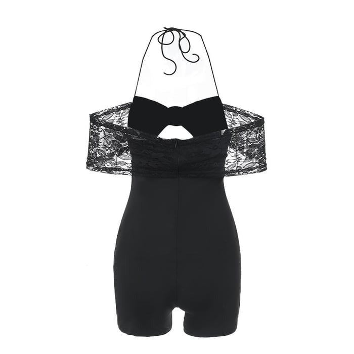 Sexy Lace Hollow Halter Neck Metal One-shoulder Splicing Jumpsuit Romper