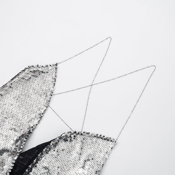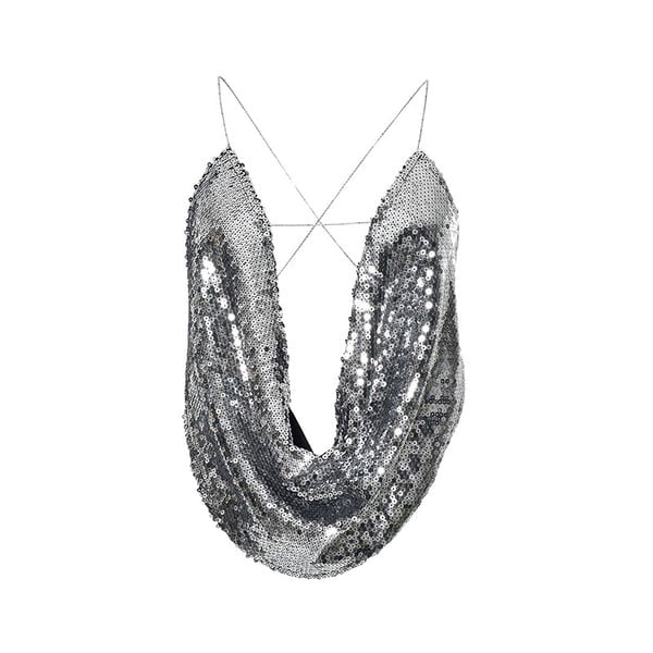 Sexy Sequin Chain Halter Backless Top