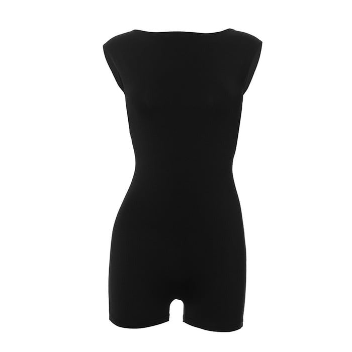 Solid Color Simple Backless Jumpsuit Romper